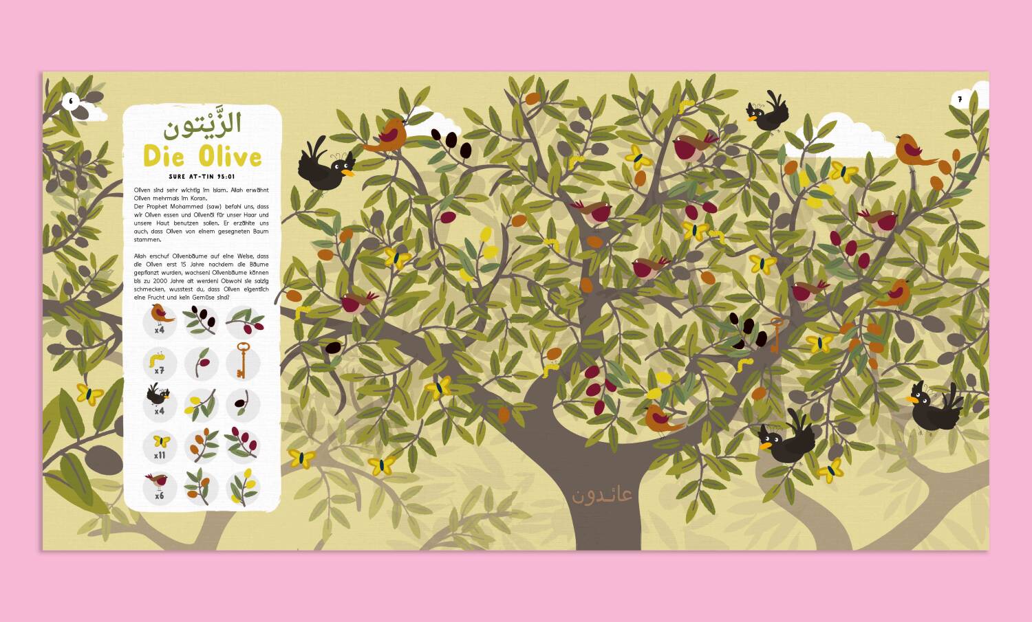 Erkunde die Bilder, um die versteckten Pflanzen und Gegenstände zu finden, die in jeder Szene versteckt sind. Lerne die arabischen Namen der Pflanzen, die in diesem Buch vorgestellt werden. Entdecke erstaunliche Fakten über Allahs Schöpfungen.