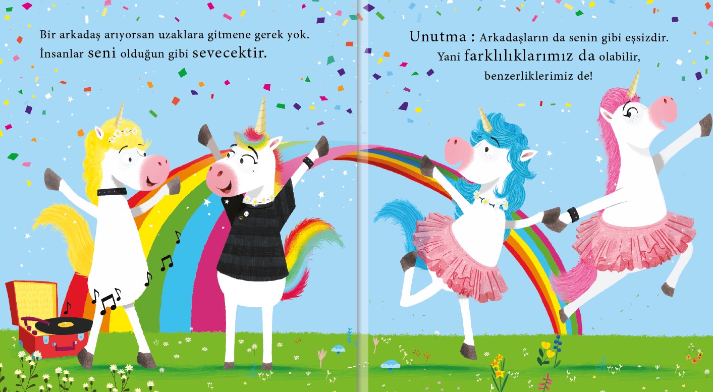 Emma Adams bu hikâyesinde biraz farklı bir tek boynuzlu at tanıtıyor bize. Gökkuşağını, dondurmayı, hoplayıp zıplamayı, partileri sevmeyen bir tek boynuzlu at… Hem kendimizi hem de başkalarını olduğu gibi kabul ederek daha mutlu olabileceğimizi anlatan eğlenceli bir hikâye.