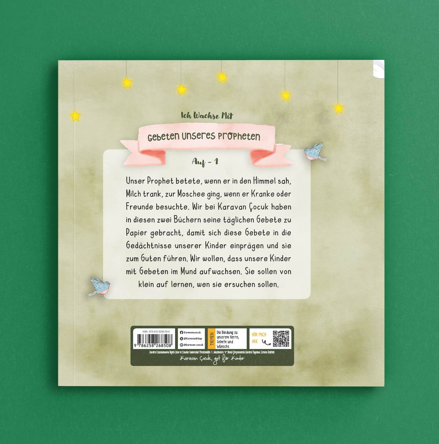Unser Prophet betete, wenn er in den Himmel sah, Milch trank, zur Moschee ging, wenn er Kranke oder Freunde besuchte. In diesem Buch werden die täglichen Gebete des Propheten visualisiert, damit sich diese Gebete in die Gedächtnisse unserer Kinder einprägen und sie zum Guten führen.